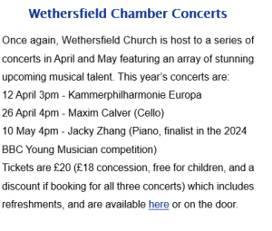 Add your comming Event – contact David Eversden, post 7 Barryfields CM7 5HJ